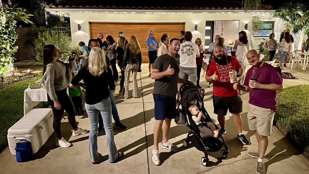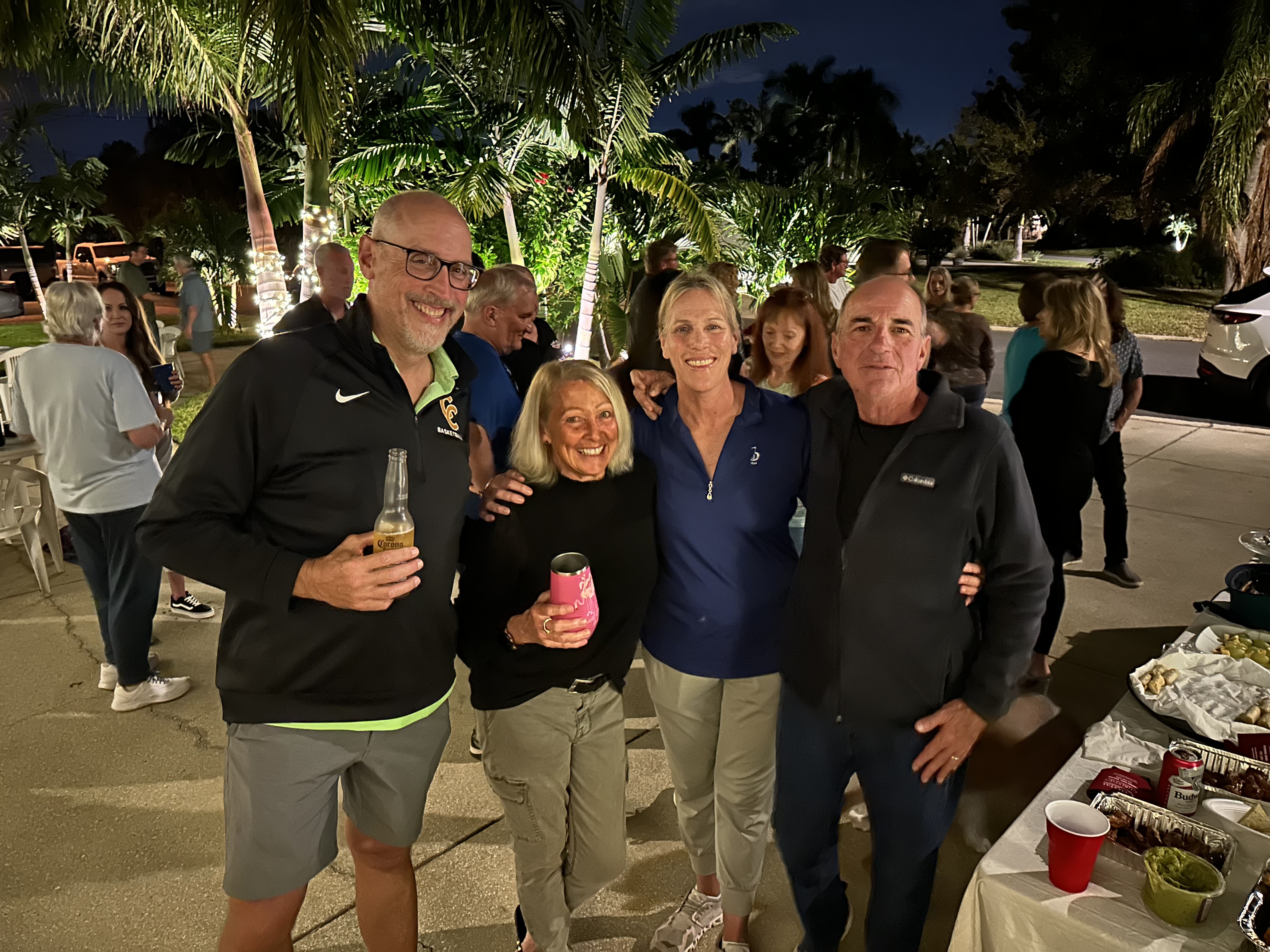 President Steiss, always a forward thinker, has declared the First Friday community gatherings an “official thing” after a remarkably successful inaugural gathering of more than 40 neighbors on his driveway and lawn.