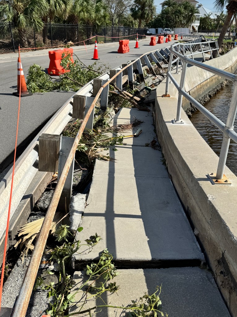 9:34 a.m. Ryan Farmer, our neighbor, is in the neighborhood and says “The Dolphin Bridge is on the verge of collapse.” We are trying to get photos, stand by.