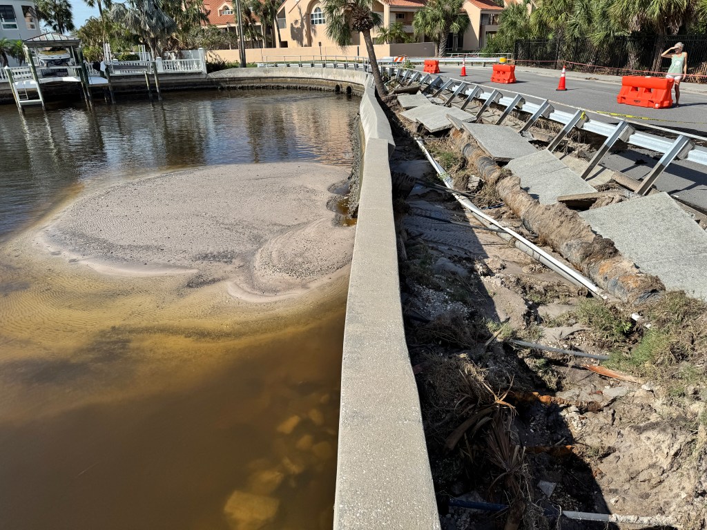 “Talking to Pinellas County, the bridge is open for one lane of traffic. Tell everyone to go slow and use caution. Travel their road at their own risk. The road is washing out from underneath. People should plan on the road being closed in the future.”