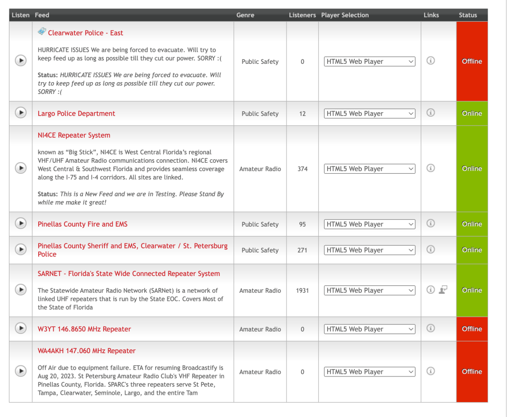 Click on the graphic below, when you see the map, click on Pinellas County. Scroll down to “Listen.” It will open a second window. You will get a 30-second commercial then it will play scanner audio non-stop.