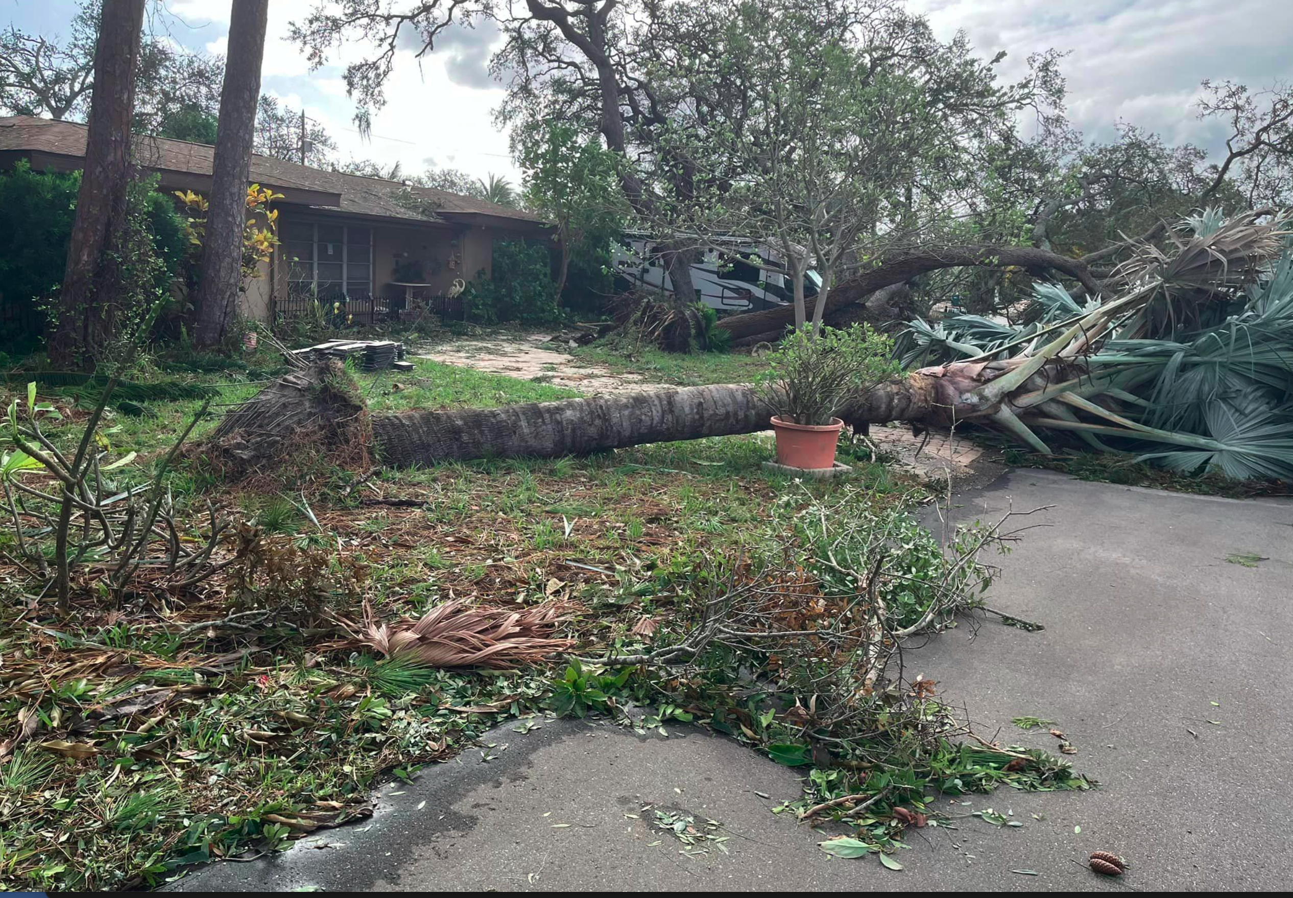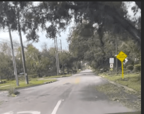 Ryan said power lines and poles are down all over. Debris is blocking our streets. He said if you try to drive on the streets you risk puncturing your tires. He said he already picked a sharp object out of a tire. He said he has not seen any houses hit by trees.