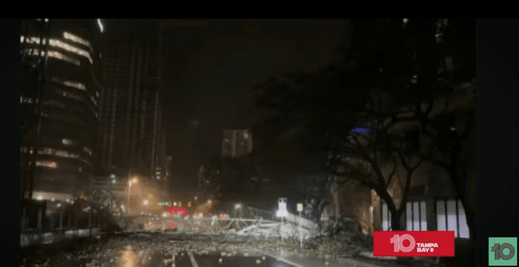One of the cranes is reported to have hit the building that houses The Tampa Bay Times. (source Bay News 9)