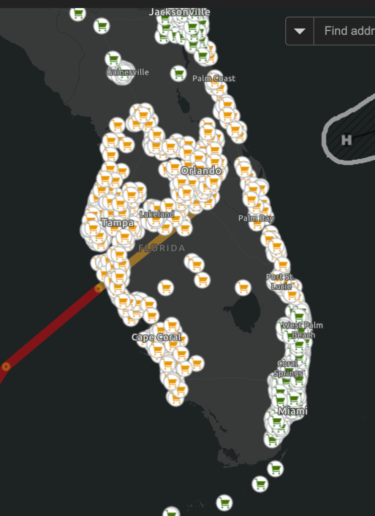 The Duke map shows everything is dark now. Duke says 40 states are sending help to Florida. 285,000 Duke customers have lost power.