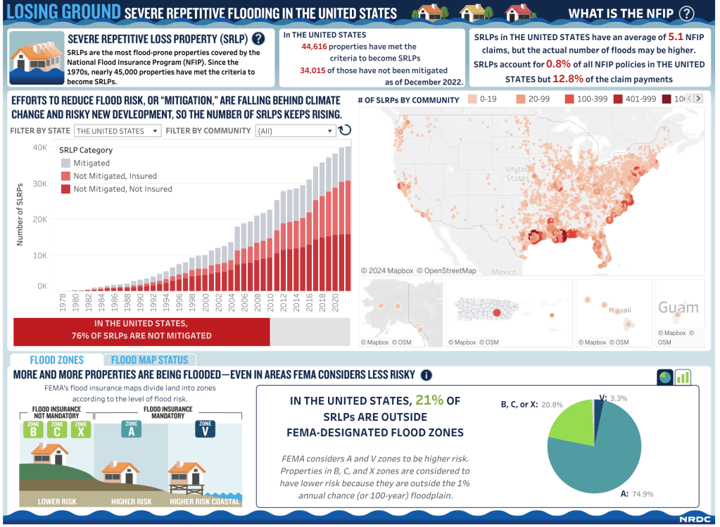 The National Flood Insurance Program (NFIP) was created in 1968 to provide affordable insurance against flood risk and decrease overall risk across the country. Since then, nearly 45,000 properties have met the criteria to become what the program refers to as Severe Repetitive Loss Properties (SRLPs). These properties, the most flood-prone structures insured under the NFIP, have flooded about five times each, on average.