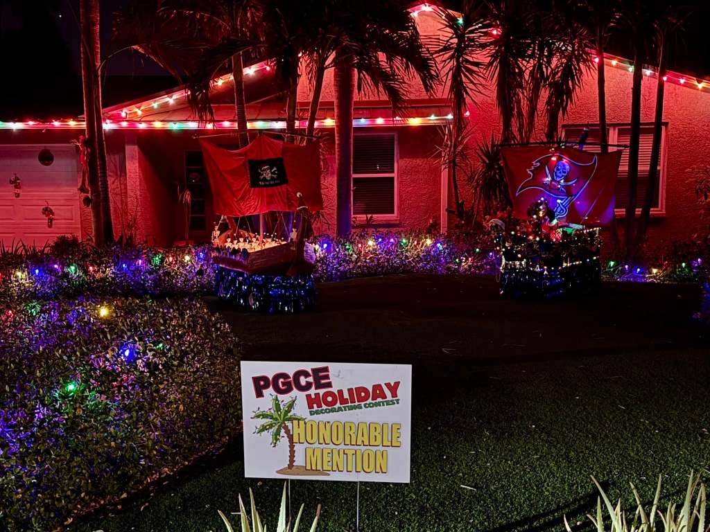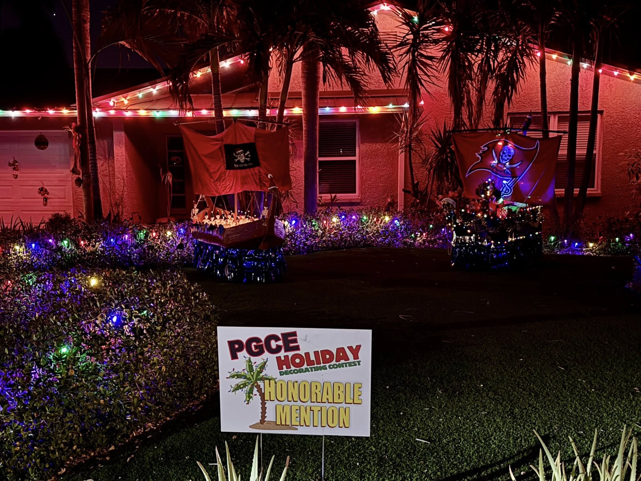 A wonderful display that deserves special recognition for spreading the joy, pirate ships and all.